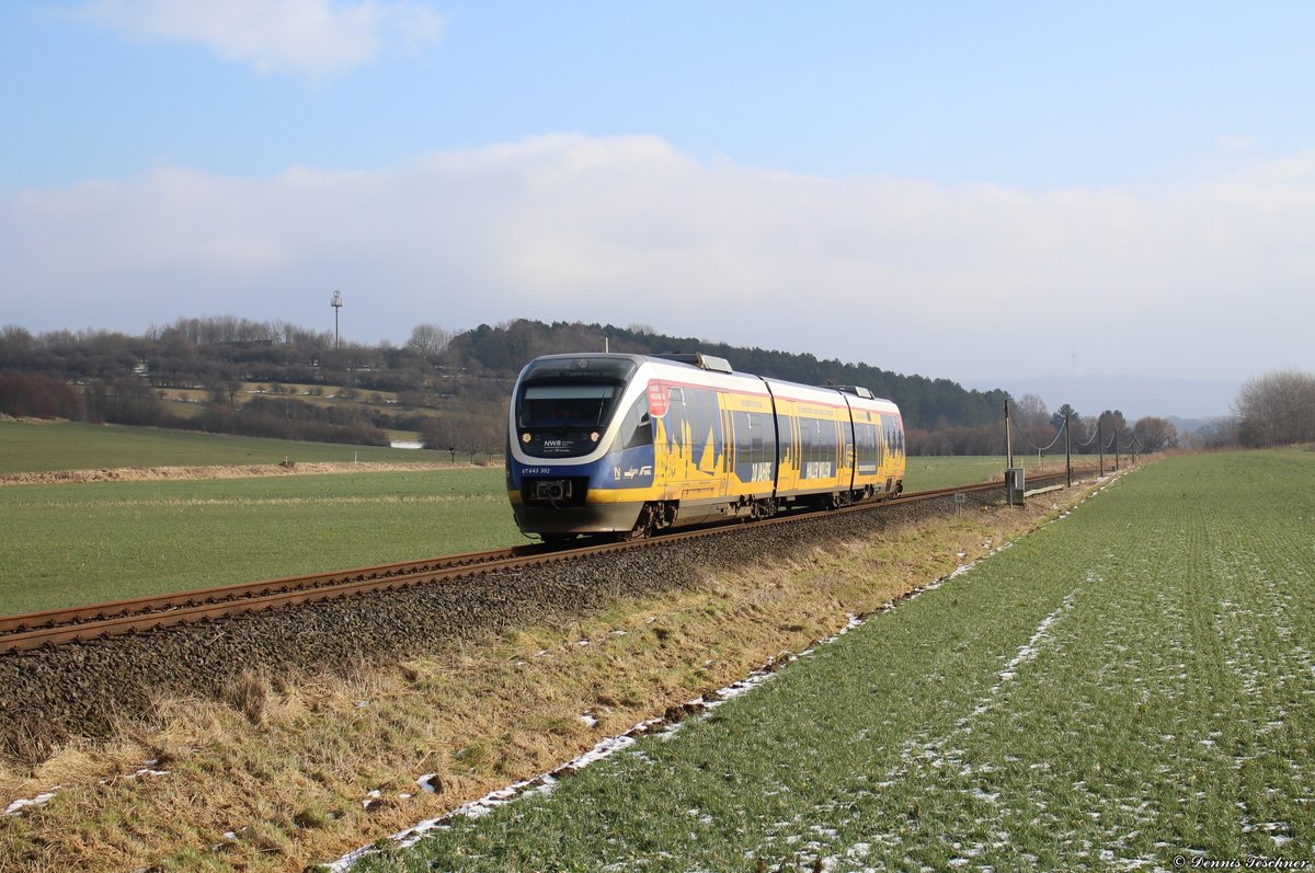 643 302 NWB (10 Jahre Haller Willem) als RB 85 von Göttingen nach Paderborn bei Lenglern am 16.02.2018