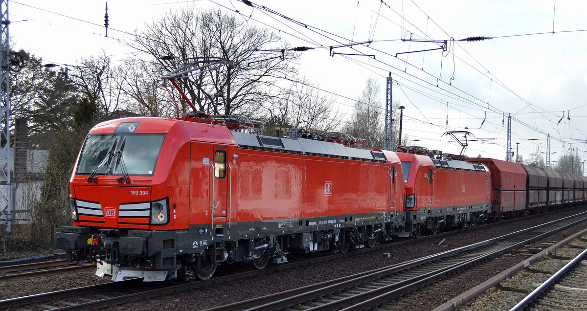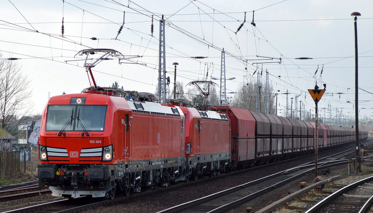Doppeltraktion 193 304-3 + 193 302-7 mit Erzzug ab Rostock nach Eisenhüttenstadt am 16.02.18 Berlin-Hirschgarten.