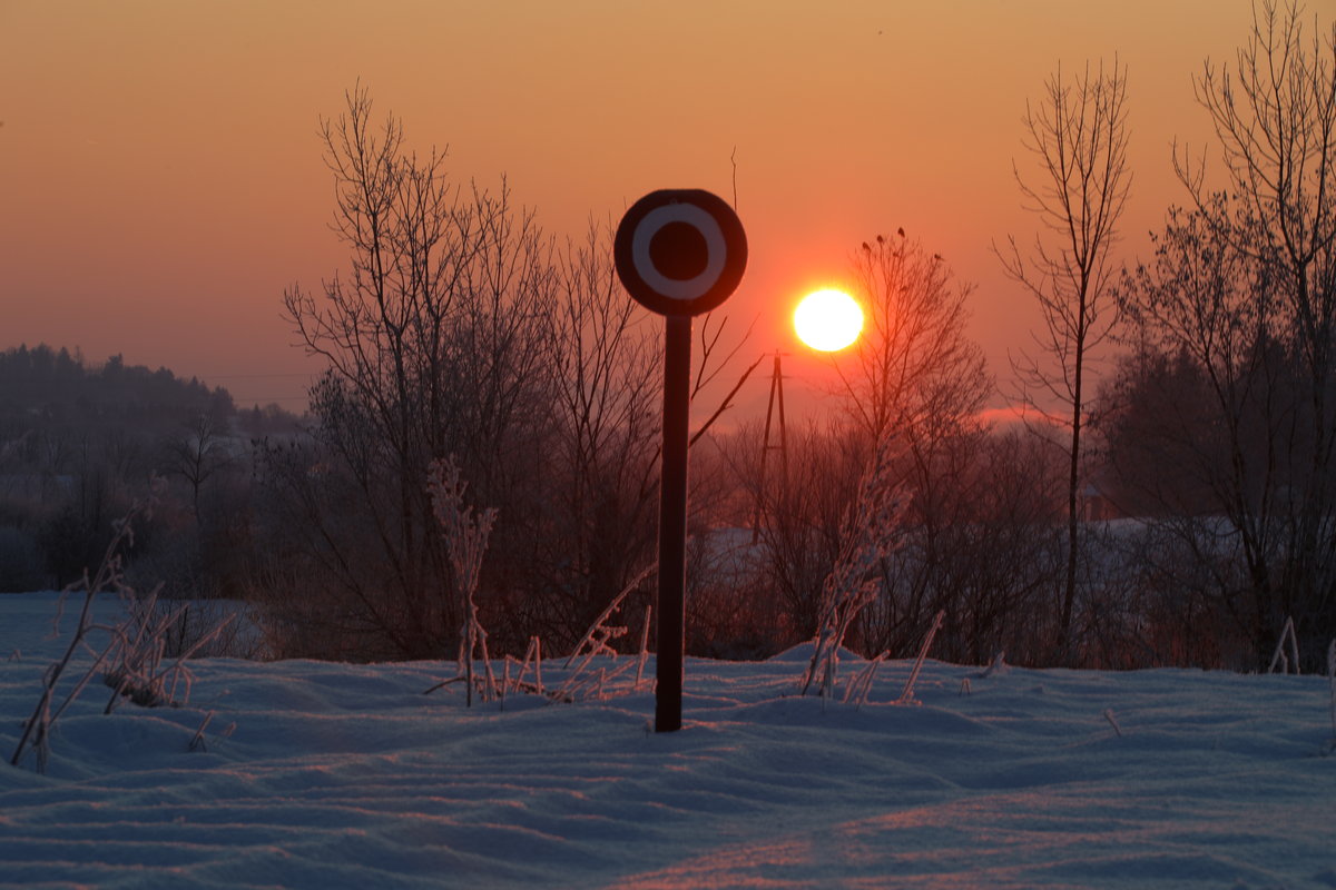 Sperrsignal am Ende des Abstellgleises in Herbersdorf am 15.02.2018