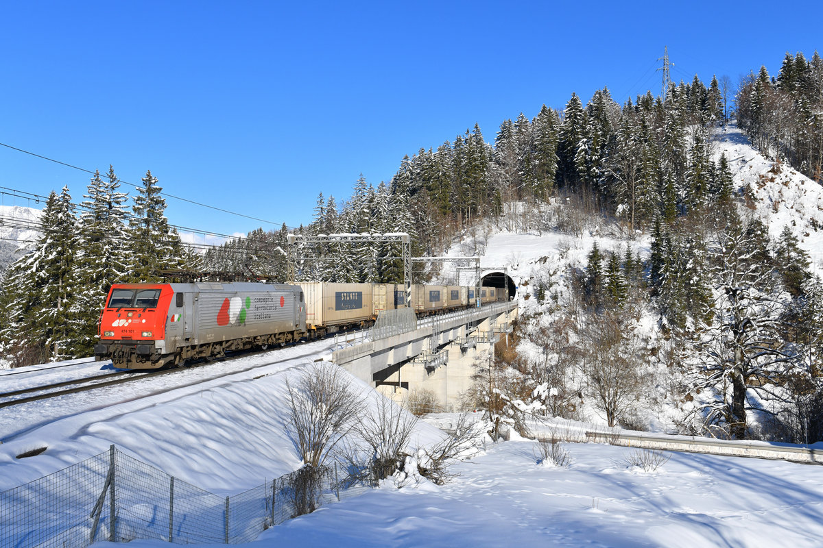 E 474 101 mit EUC 63153 am 14.02.2018 bei Tarvisio.