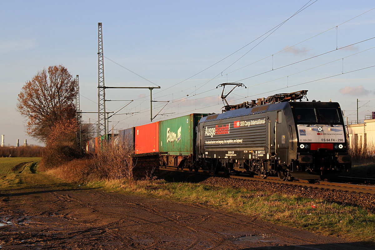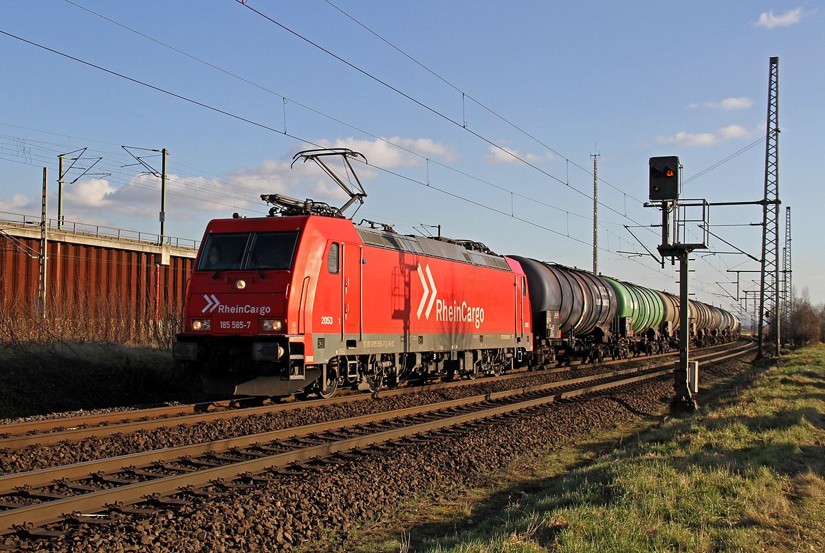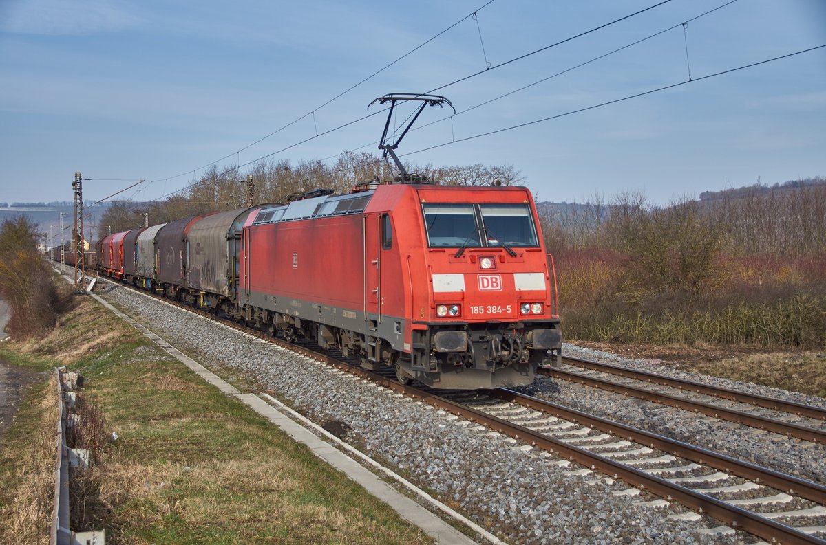 185 384-5 ist am 07.02.2018 mit einen gemischten Güterzug bei Würzburg/Süd zu sehen.