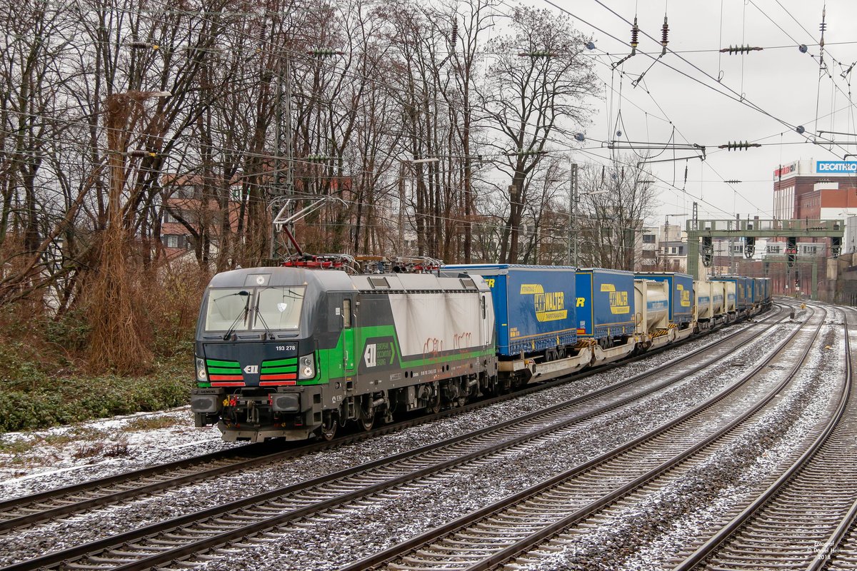 193 848-9 von der EGP und 285 804 sind mit einen Autozug am 07.02.2018 bei Würzburg/Süd zu sehen.
