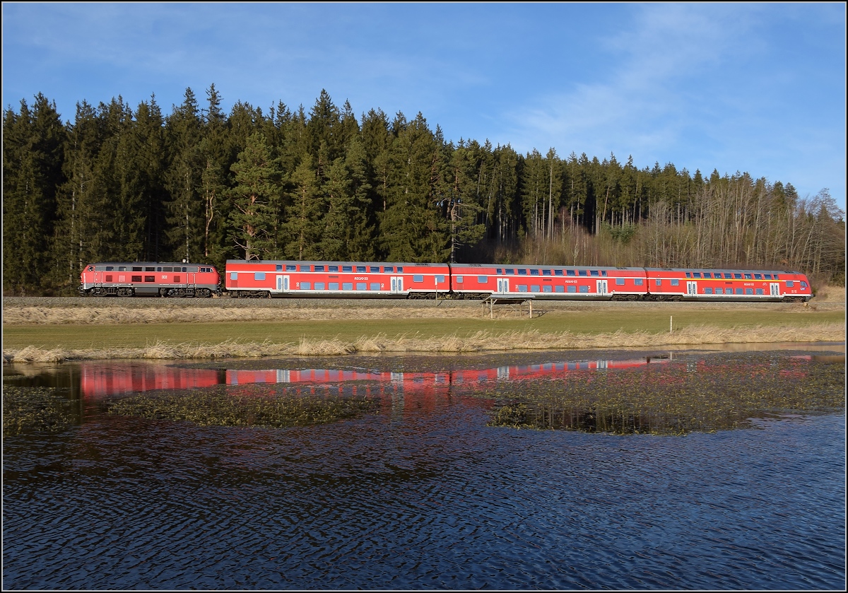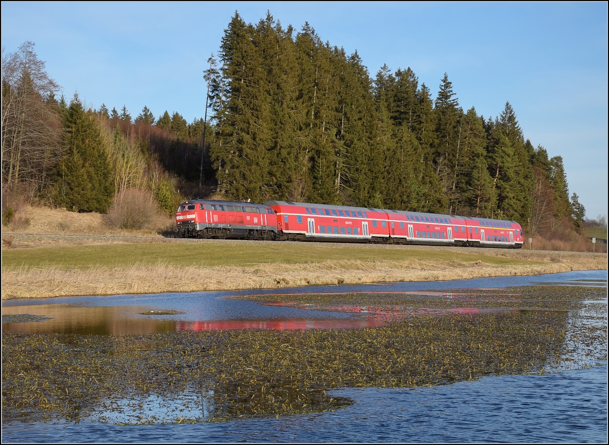 Trotz oder wegen des angschnittenen Baumes einen seltsamen Reiz. Drum fand ich es zeigenswert, auch wenn da vielleicht nicht jeder zustimmen wird. 612 013 in Spattweg auf dem Weg nach Lindau. Februar 2018.