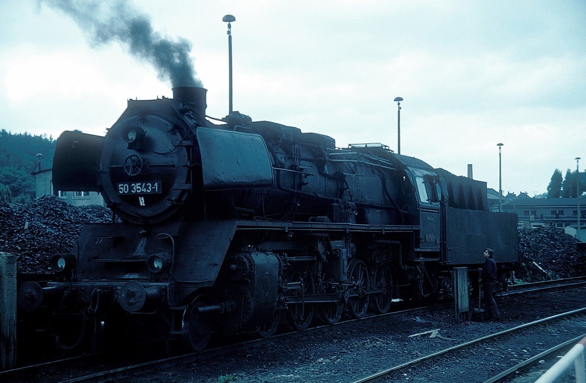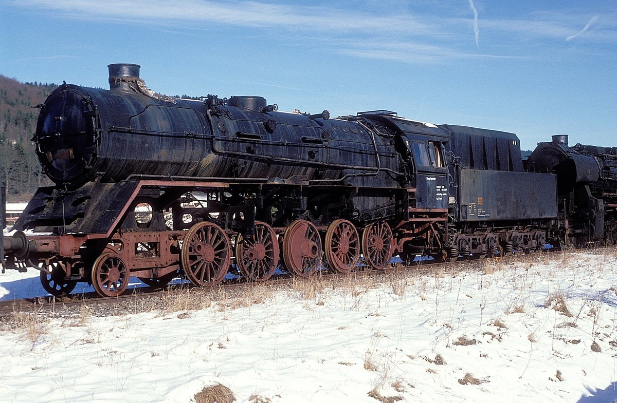Schmalspurdampflokomotiven in Portugal: CP E 168 (3 069 168-5) abgestellt am 27.04.1984 in Tua. Diese Lok befindet sich heute nicht betriebsfähig bei der Brohltalbahn.