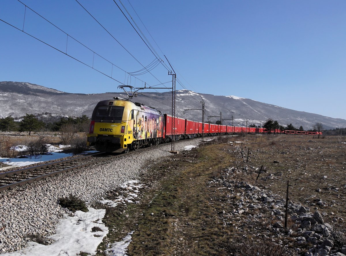 DH 1100.1 macht sich am 15.Februar 2018 auf den Weg eine weitere Ladung Abraummaterial aus der Koralm zu holen .