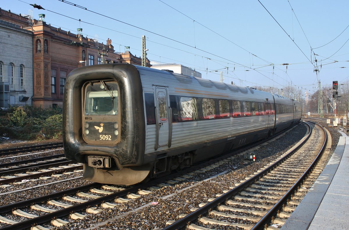 Ein DABbuzfa 760, 50 80 36-33 020-9, steht am 12.02.2018 zusammen mit 143 333 im Bahnhof Frankfurt (O) und wartet auf seine Abfahrt in Richtung Eisenhüttenstadt.