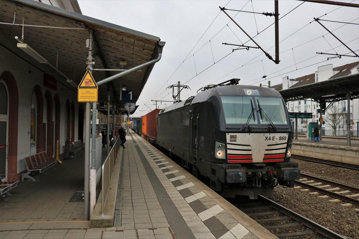 Gerade bei grauem dunklen Wetter immer ein Genuss, dieser Farbtupfer, die MRCE Vectron X4 E - 640/193 640-0  CONNECTED BY RAIL  von TXL mit dem Papierzug Richtung Rostock am 17.02.18 Bf. Flughafen Berlin-Schönefeld.