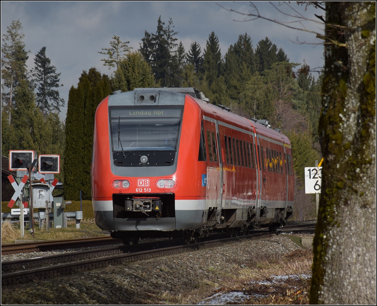 Ein unbekannter 612 durchfährt Harbatshofen Richtung Lindau. Februar 2018.