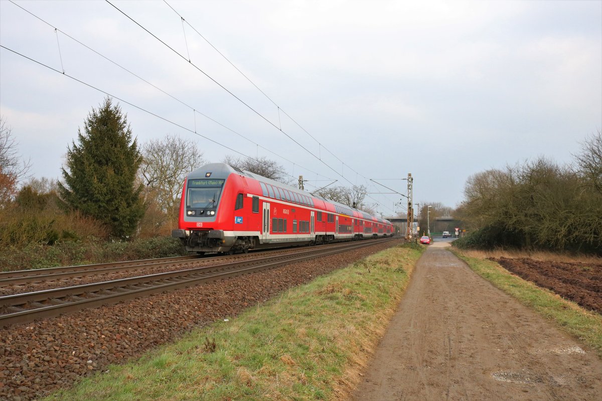 445 025-3 fährt am 10.2.2018 als RE7 (RE21063) von Flensburg zusammen mit 445 023-8 als RE7 (RE21113) von Kiel Hauptbahnhof in den Hamburger Hauptbahnhof ein.