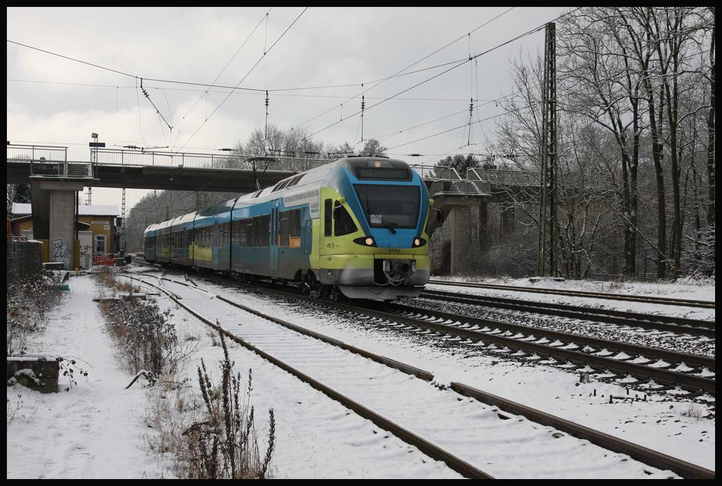 Ausfahrt eines 643ers der NEB gen Werneuchen in Ahrensfelde. Ahrensfelde 04.01.2018