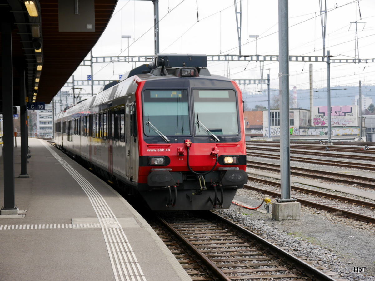 RABe 522 207, auf der S1, fährt Richtung Bahnhof Muttenz. Die Aufnahme stammt vom 05.02.2018.