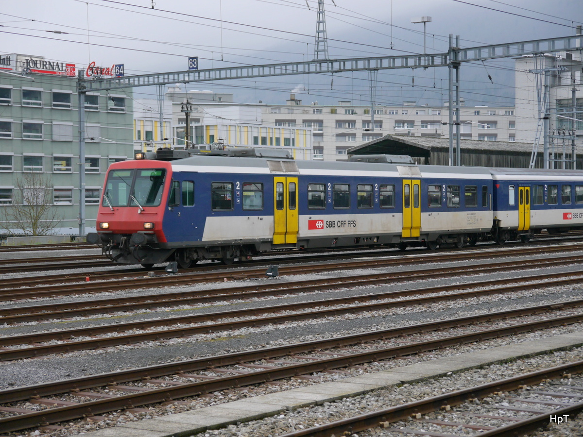 SBB - Steuerwagen ABt 50 85 39-43 880-6 an der Spitze eines Regio nach Neuchatel im Bahnhof von Biel-Bienne am 28.01.2018