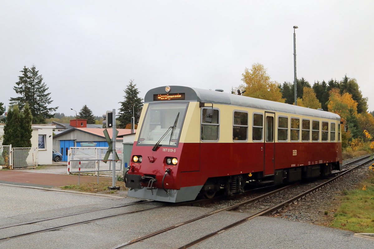 Die Türme der Stadt, oder wenigstens einige davon sieht man hier in Plauen im Vogtland am Einheitstag 3.10.2015. Der VBG 650 befindet sich im neuen Haltepunkt Plauen Mitte, siehe Bahnsteig und Schild rechts neben dem Zug....