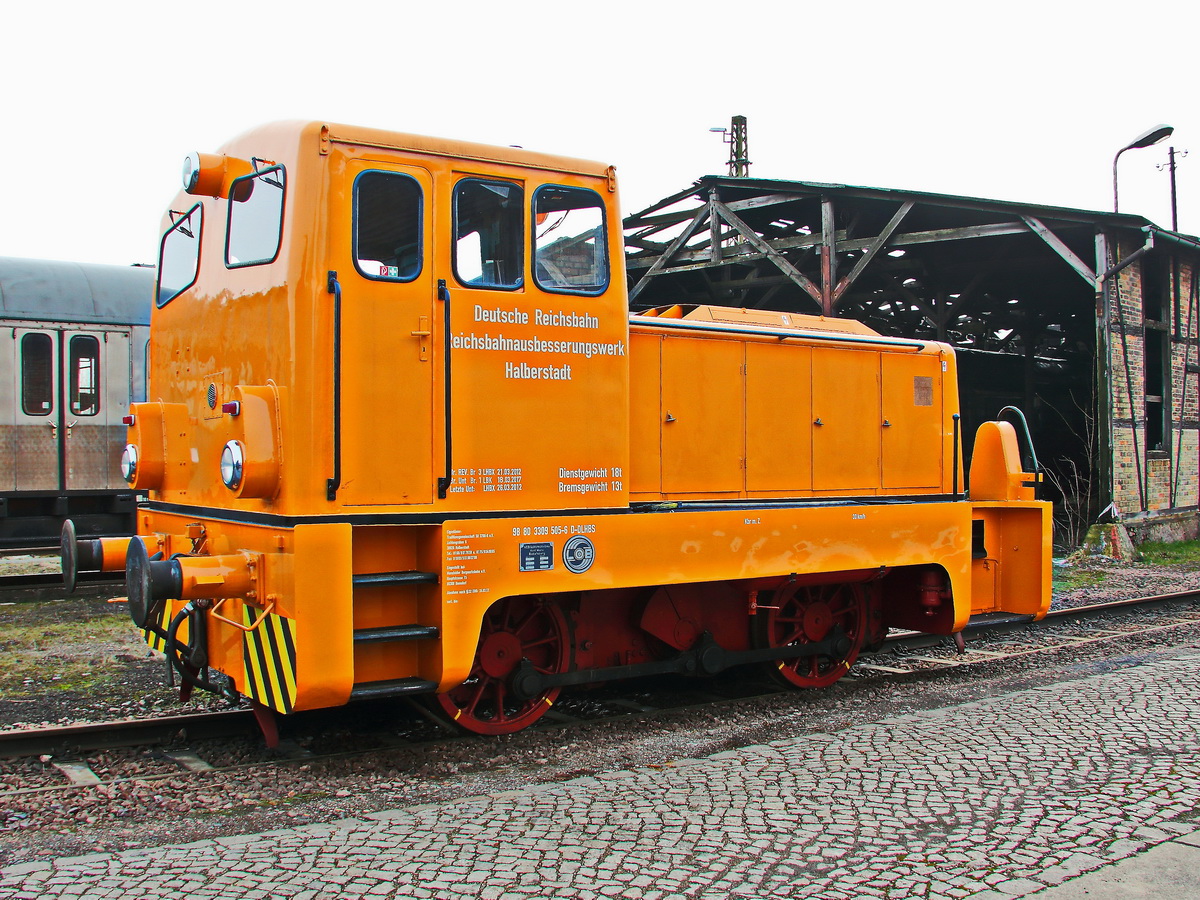 Am 17. Februar 2018 steht in Blankenburg (Harz) abgestellt eine Werkslok (?) mit der Beschriftung : "VEB Halberstädter Fleisch- und Wurstwarenwerke" "Auf Gleisen des Bahnhofs Halberstadt zugelassen"
