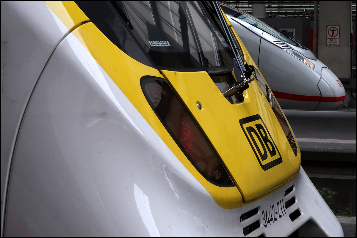 Der Talent 2 3442-211 wartet im Stuttgart-Hauptbahnhof neben einem Velaro D auf seine Abfahrt nach Freudenstadt und Rottweil (hinterer Zugteil).