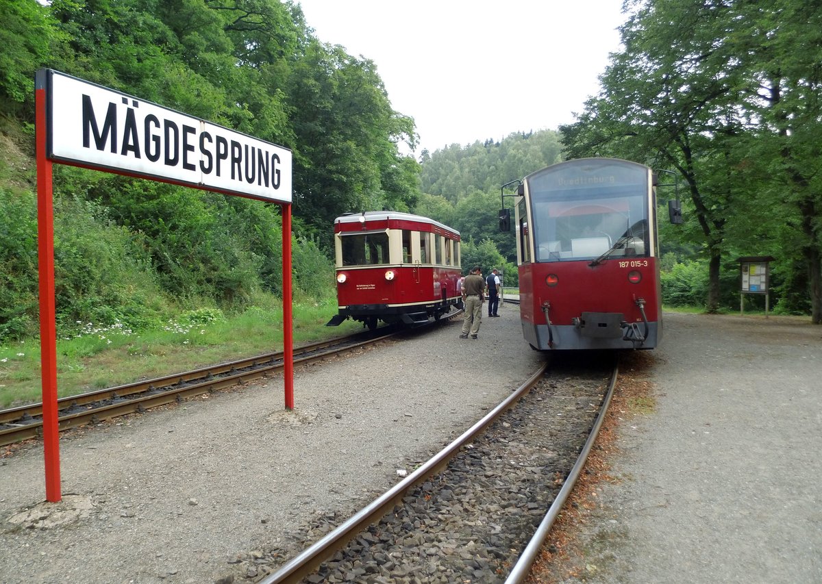 Mit seinen Gästen, die am 27.07.14 den 187 001 gechartert hatten, kam es in Mägdesprung zur Zugkreuzung mit dem 187 015.Leider sind derzeit beide Fahrzeuge außer Betrieb, der 187 001 wegen anstehender Reparatur in Westerntor und der 187 015 abgestellt daselbst.