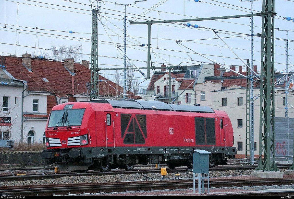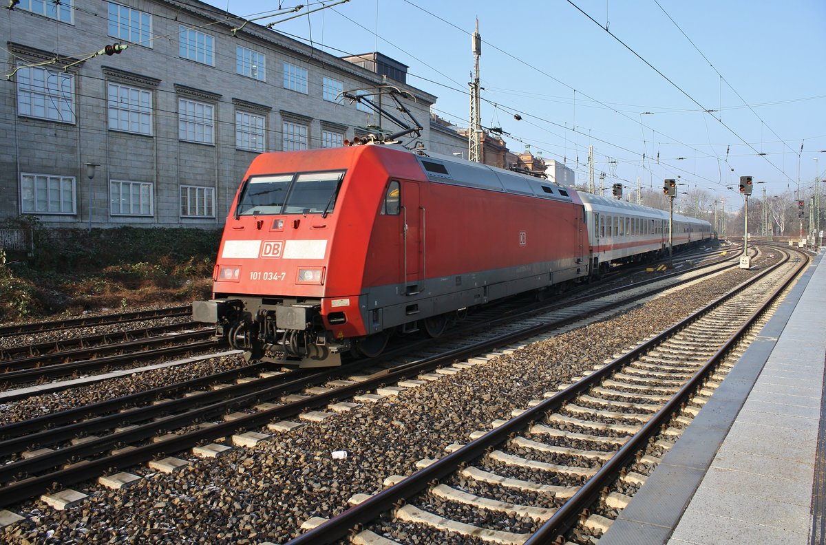 146 562-4 DB als IC 2039 (Linie 56) von Norddeich Mole nach Leipzig Hbf scheint das Rennen gegen 9442 117 (Bombardier Talent 2) von Abellio Rail Mitteldeutschland, der bereitgestellt wird, zu gewinnen. Aufgenommen von der Delitzscher Straße. [26.1.2018 | 15:55 Uhr]