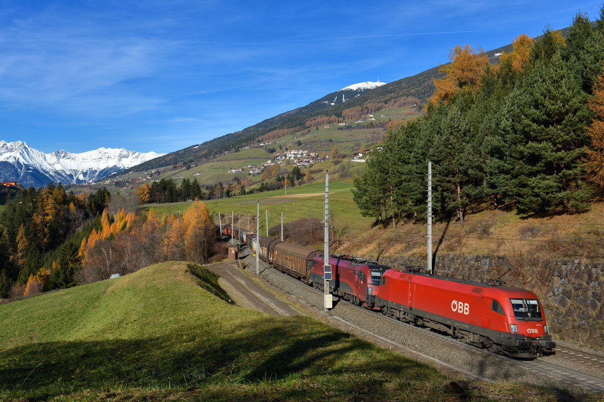1116 174 + 1216 017 mit einem Güterzug am 22.11.2017 bei Mühlbachl.