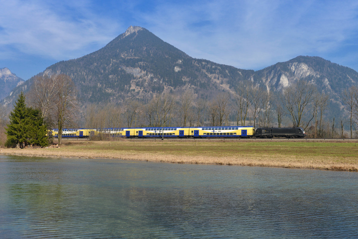 182 509 mit einem Meridian Ersatzzug am 11.03.2014 bei Niederaudorf.