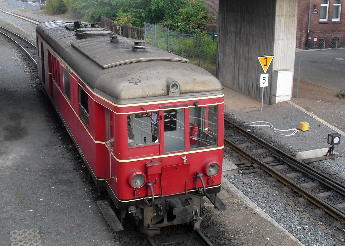 Für mich war das wirklich eine Premiere, denn dieses Fahrzeug war zu früheren Zeiten nur als Hilfszuglok und Arbeitswagen im Südharz zusehen und damals noch in Rot/Elfenbein.Es machte schon was her, wenn er mit sonoren Brummen seines Dieselmotors und der elektrischen Fahrmotoren vom Schurzfell die Kastanienallee entlang nach Krimderode gefahren kam.