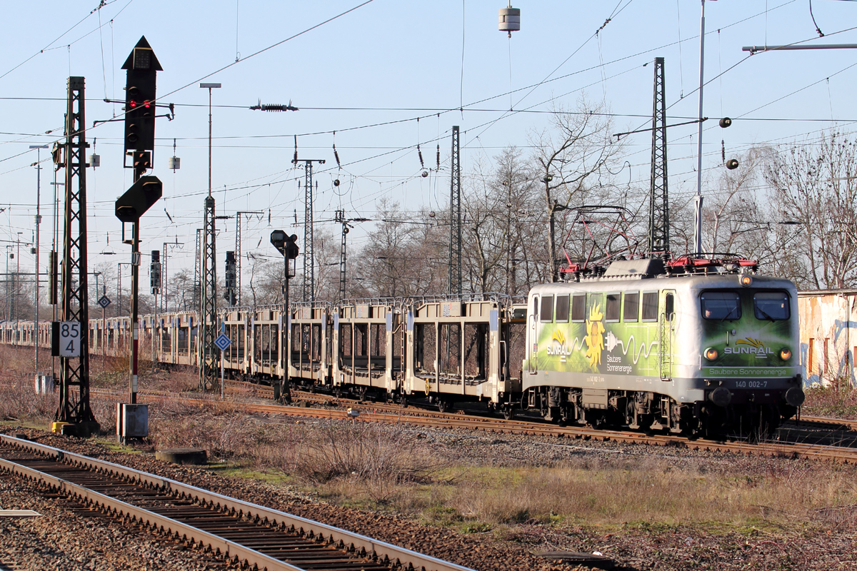 Gestern ging es für mich am späten Nachmittag mit dem Auto nach dem Feierabend an die Bahn. Aufgrund der Vormeldung, dass die zwei 140er mit einem Containerzug südwärts unterwegs waren, machte ich mich auf den Weg nach Niedernjesa. Mit ein etwas Verspätung rollte der Zug an mir vorbei.