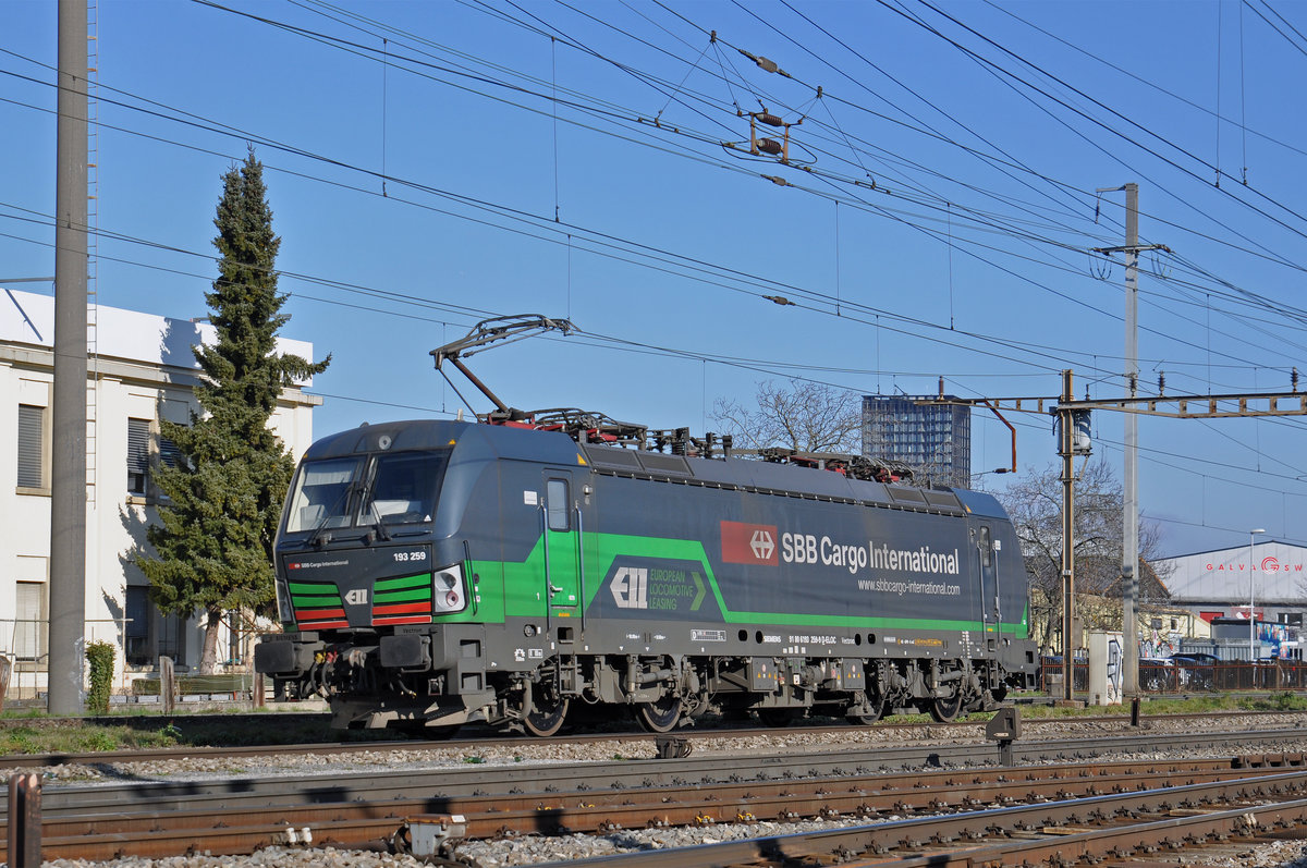 Lok 193 259-9 durchfährt den Bahnhof Pratteln. Die Aufnahme stammt vom 13.02.2018.