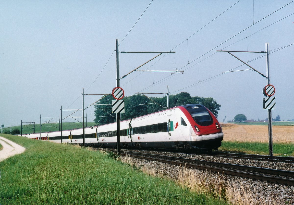 Einer der ersten ICN bei Niederbipp im Juli 1999. Die Aufnahmen vom Lok- und Neigezug entstanden am selben Morgen.