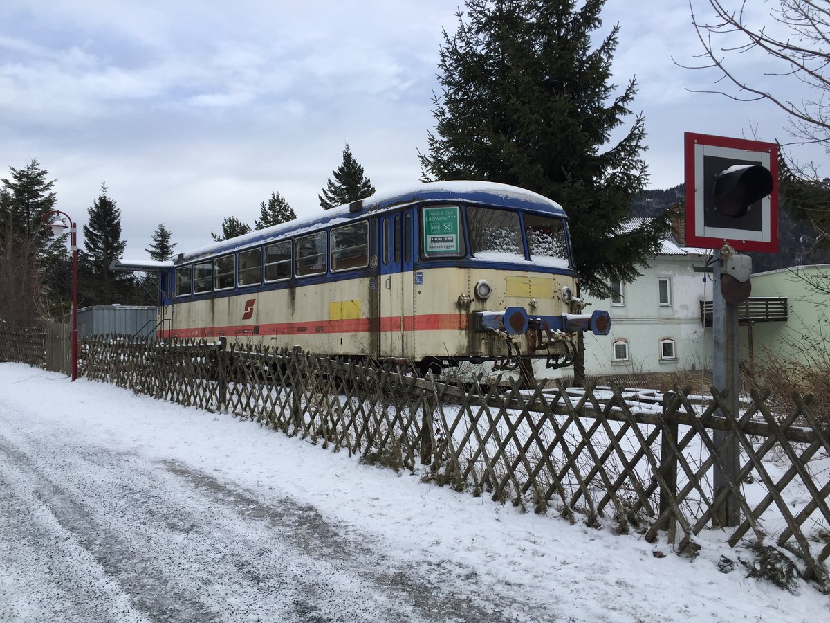 2143.56 und 2143 070 vom Verein Neue Landesbahn am 25.2.2018 mit einem leeren Getreidezug von Korneuburg nach Ernstbrunn unterwegs, aufgenommen kurz vor dem Zielbahnhof.