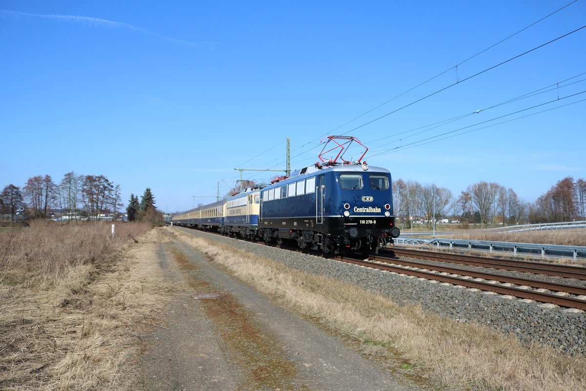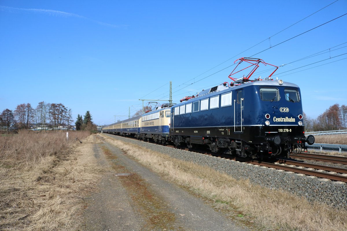 Centralbahn Krokus Exress mit 110 278-9 und 110 383-7 bei Karben (Wetterau) am 24.02.18