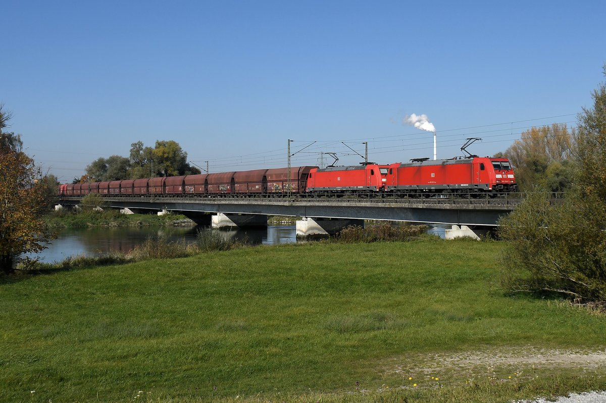 185 387 mit einem Güterzug am 03.10.2013 bei Langenisarhofen.