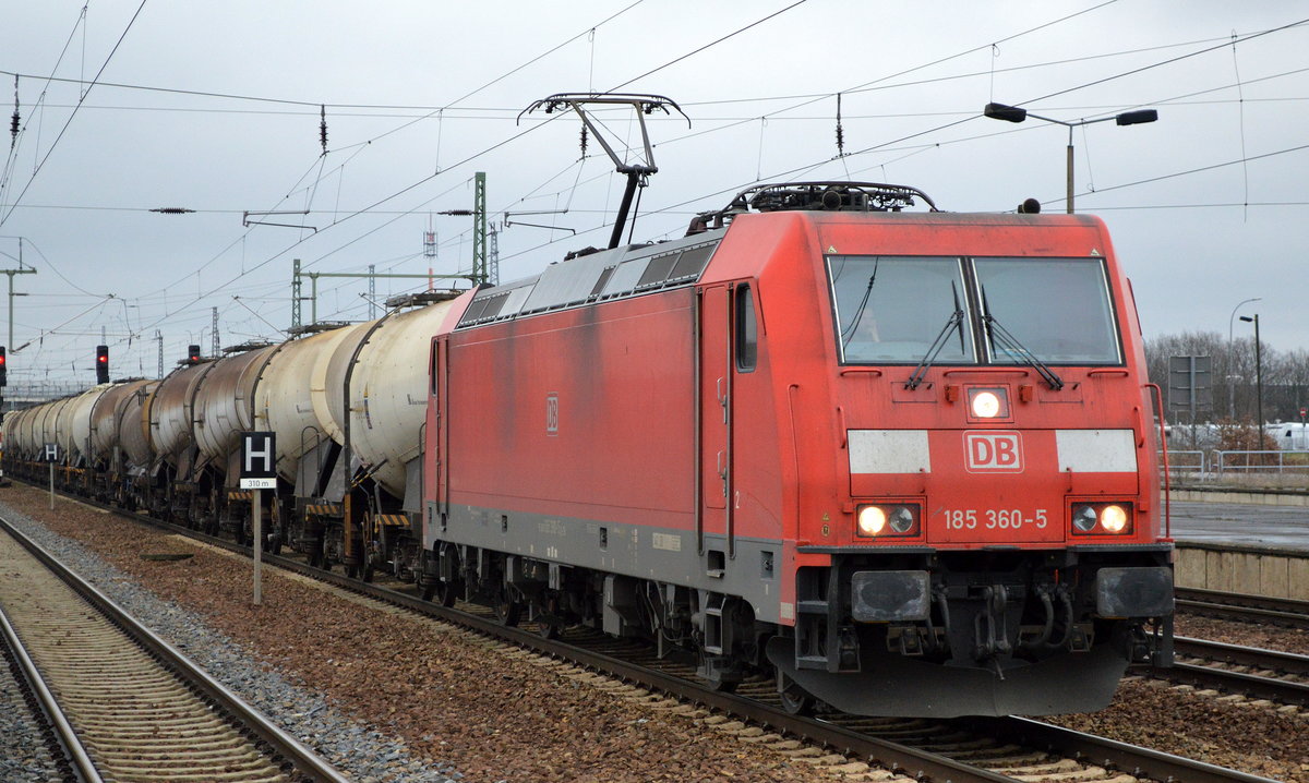 185 360-5 Mit Kesselwagenzug (Kreideschlamm) am 03.02.18 Bf. Flughafen Berlin-Schönefeld.