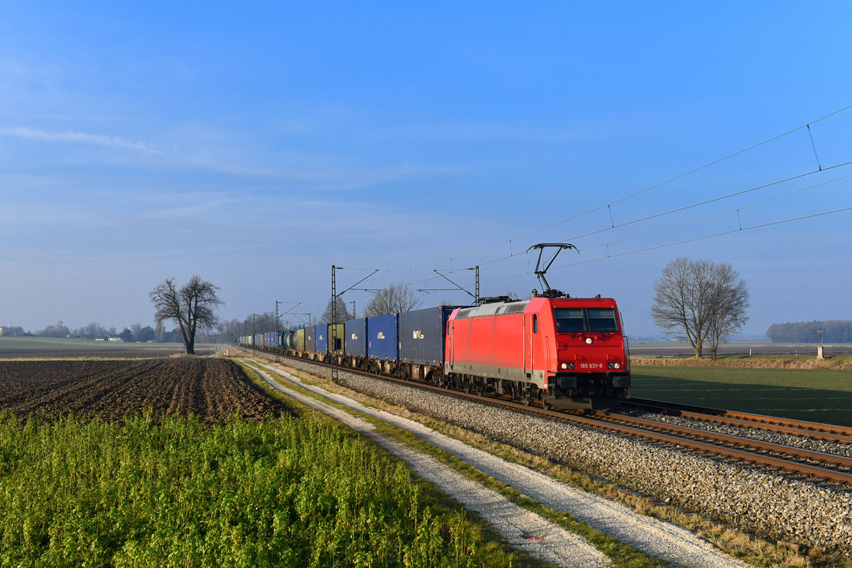 185 631 mit einem Containerzug am 26.01.2018 bei Langenisarhofen.