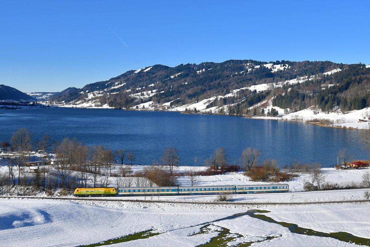 223 013 mit einem ALX am 24.12.2017 bei Immenstadt.