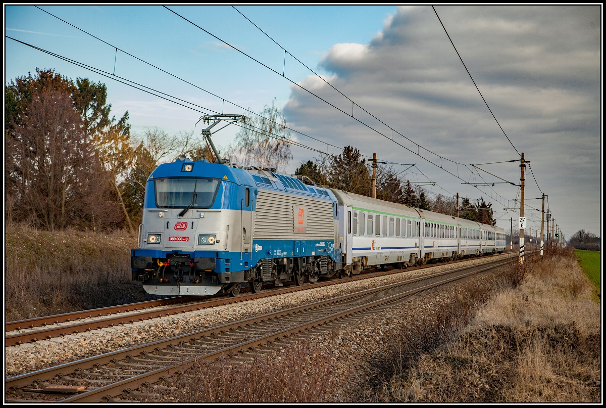 380 008 mit EC103 kurz vor der Haltestelle Silberwald am 31.01.2018.