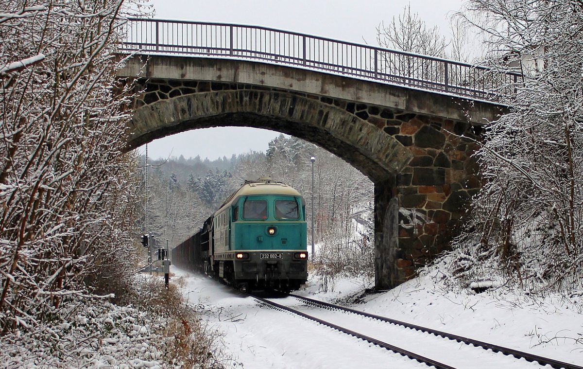 Am 04.02.18 brachte die G2000 (272 407) einen Zug mit Abraum von Stuttgart bis Hof Hbf. CTHS 232 002-8 hat ab Hof Hbf bis Gera Hbf übernommen. Hier ist der Zug im verschneiten Hohenleuben zu sehen.