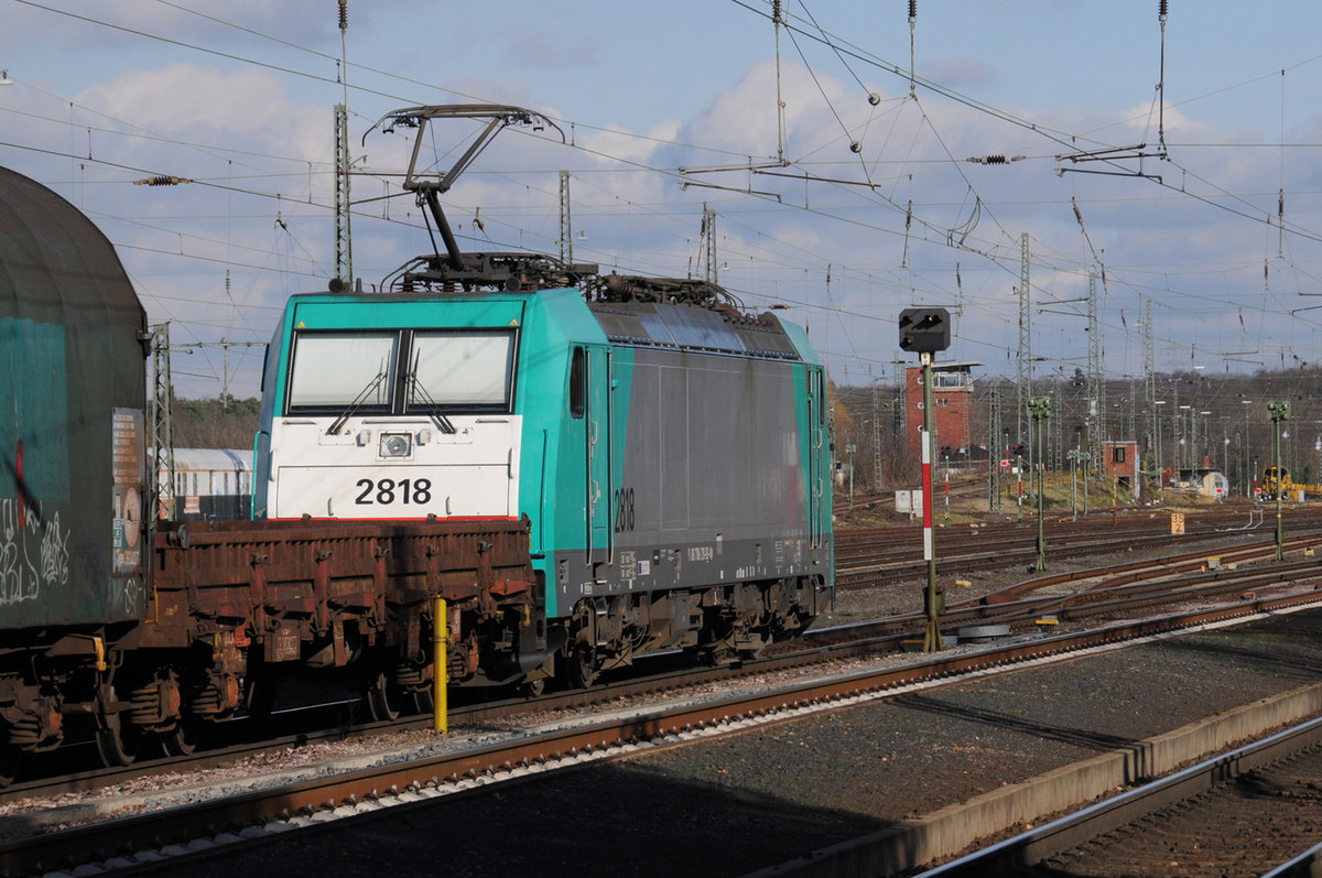 Die Cobra 2831 rangiert in Aachen-West. Aufgenommen vom Bahnsteig in Aachen-West. Bei Schneeregen am Nasskalten Nachmittag vom 2.2.2018.