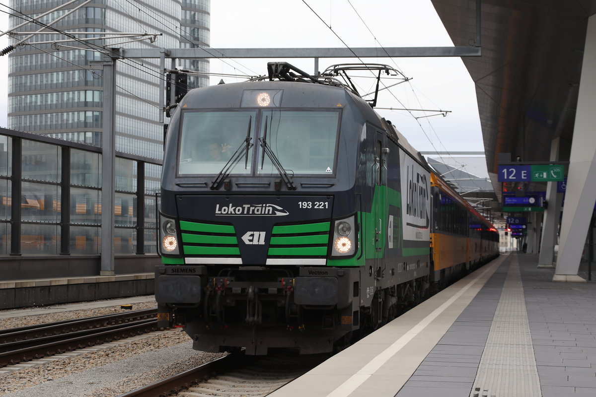 Die von ELL geleaste 193.214 wird in kürze Pünktlich den Bahnhof in Richtung Prag verlassen.
