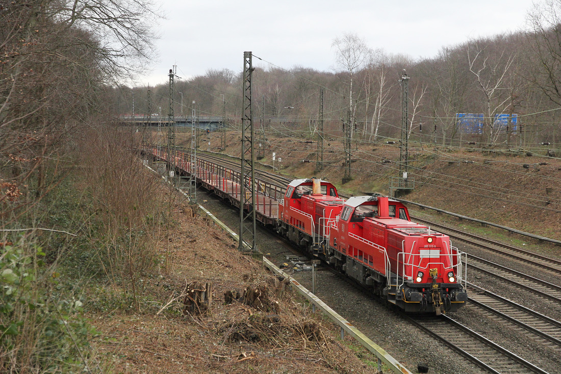 Im Bereich des Abzweigs Lotharstraße in Duisburg begegneten mir 265 015 (führend) und 265 029. Aufgenommen am 1. Februar 2018.