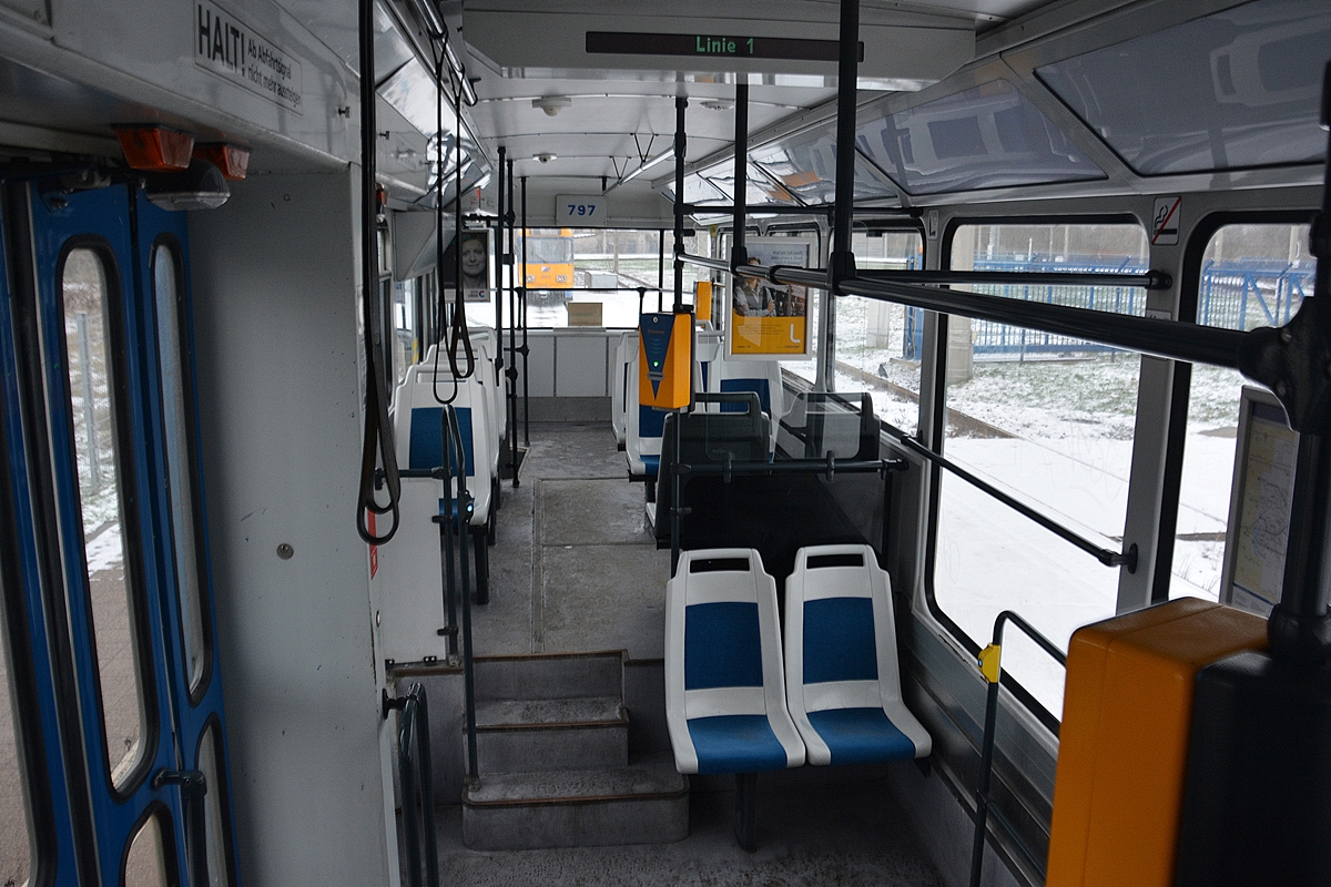 Innenraum des Wagens Tatra B4D-NF #797. Leipzig, Schleife Lausen, 20.01.2016.