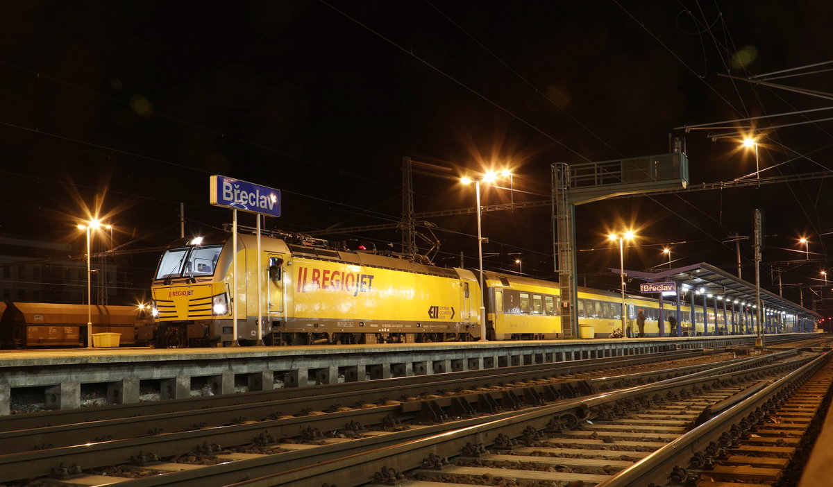 Hier am Grenzübergang Breclav ( CD ) gilt es Zugmannschaft, Stromsystem und Sicherungssystem zu Wechseln.