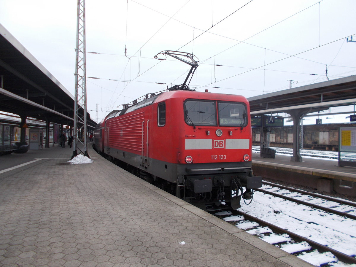 112 123 vor der Rückfahrt nach Elsterwerda,am 22.Januar 2018,im Stralsunder Hbf.