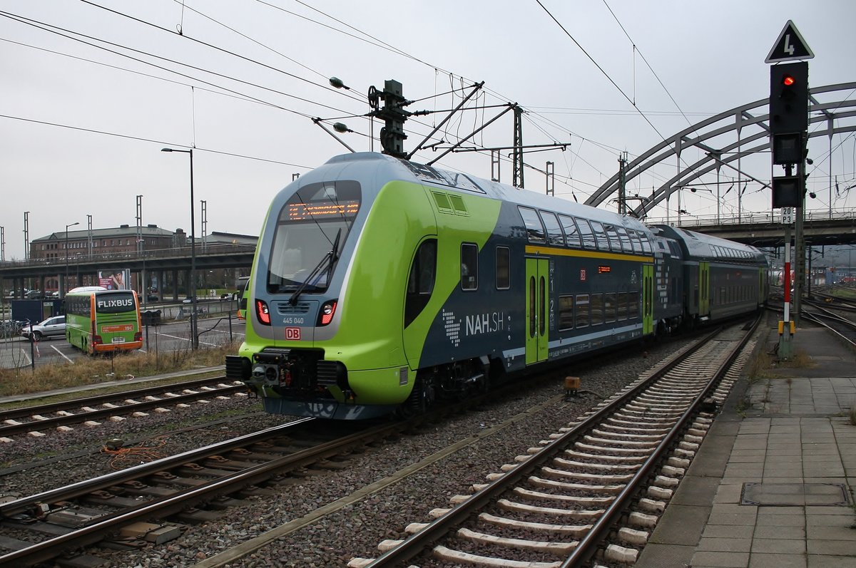 445 019-6 fährt am 20.1.2018 als RE7 (RE21118) von Hamburg Hauptbahnhof in den Kieler Hauptbahnhof ein.