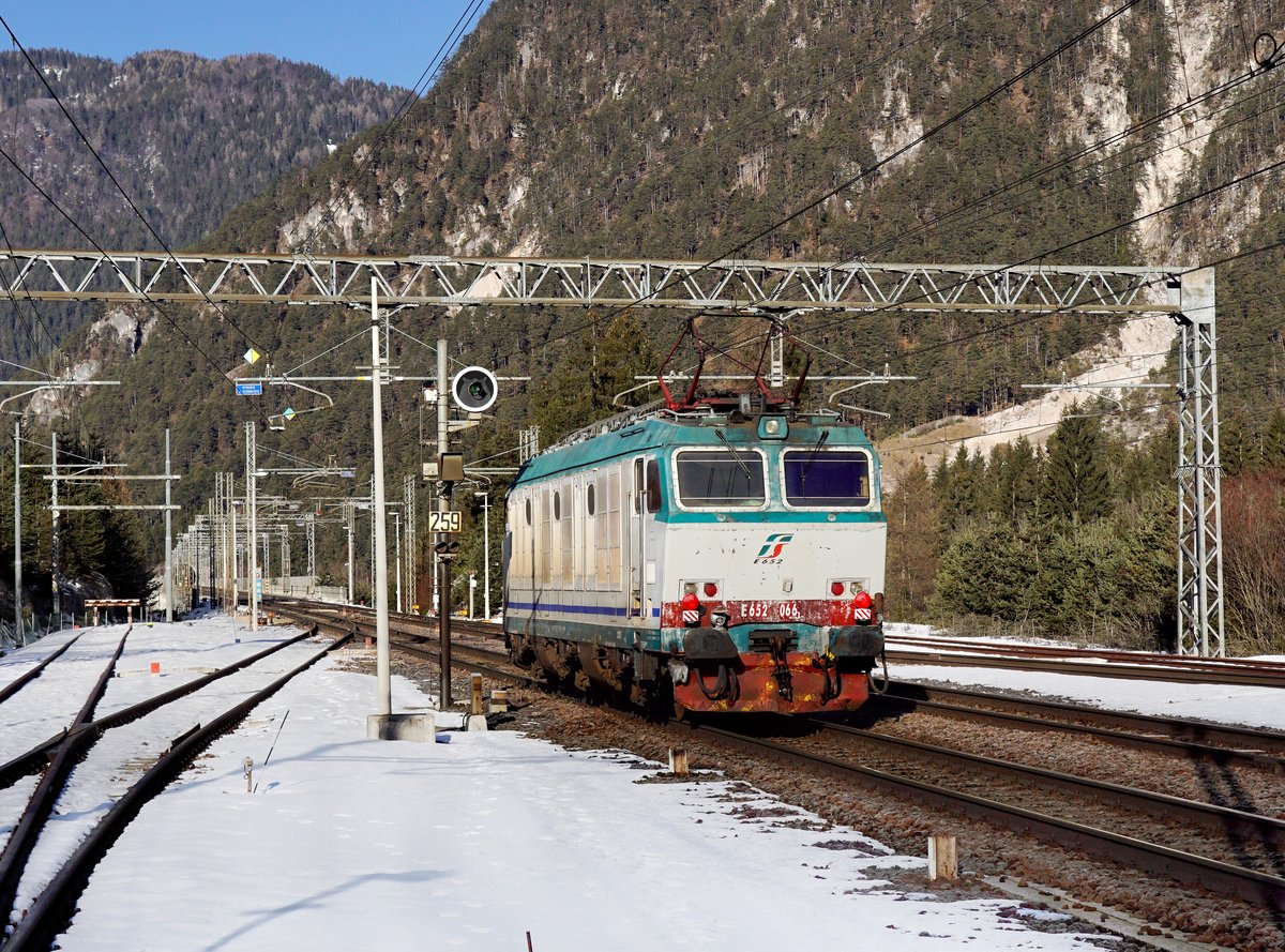 Die E 652 066 am 20.01.2018 bei der Durchfahrt in Ugovizza Valbruna.