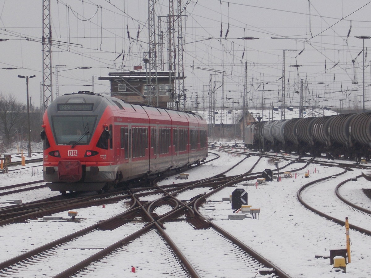 Eine kleine Wettfahrt leistete sich der 429 028,am 22.Januar 2018,nach Binz,mit einem Kesselzug bei der Ausfahrt aus Stralsund.