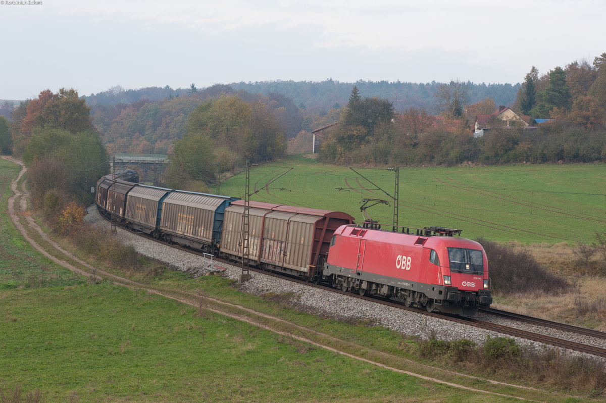 1116 258 der ÖBB mit einem KLV-Zug Richtung Regensburg bei Edlhausen, 04.11.2016