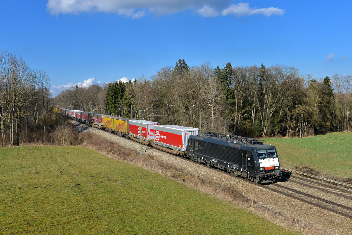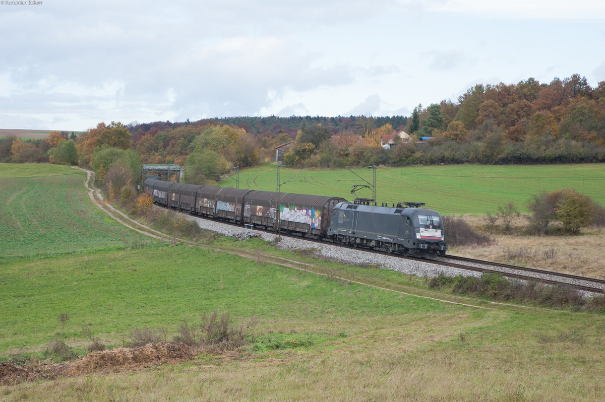 ES64 U2-063 MRCE mit einem Autotransportzug Richtung Regensburg bei Edlhausen, 02.11.2016