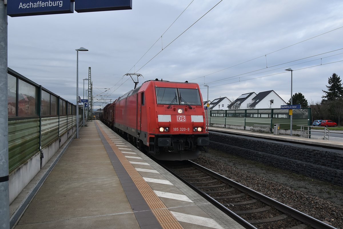 Mit einem Mischer am Haken ist die 185 320-9 in Nauheim von Bischofheim kommend gen Groß-Gerau fahrend. 7.1.2018