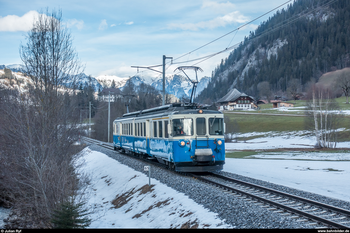 MOB ABDe 8/8 4001 "Suisse" als Regio Zweisimmen - Lenk am 8. Januar 2018 bei Blankenburg.