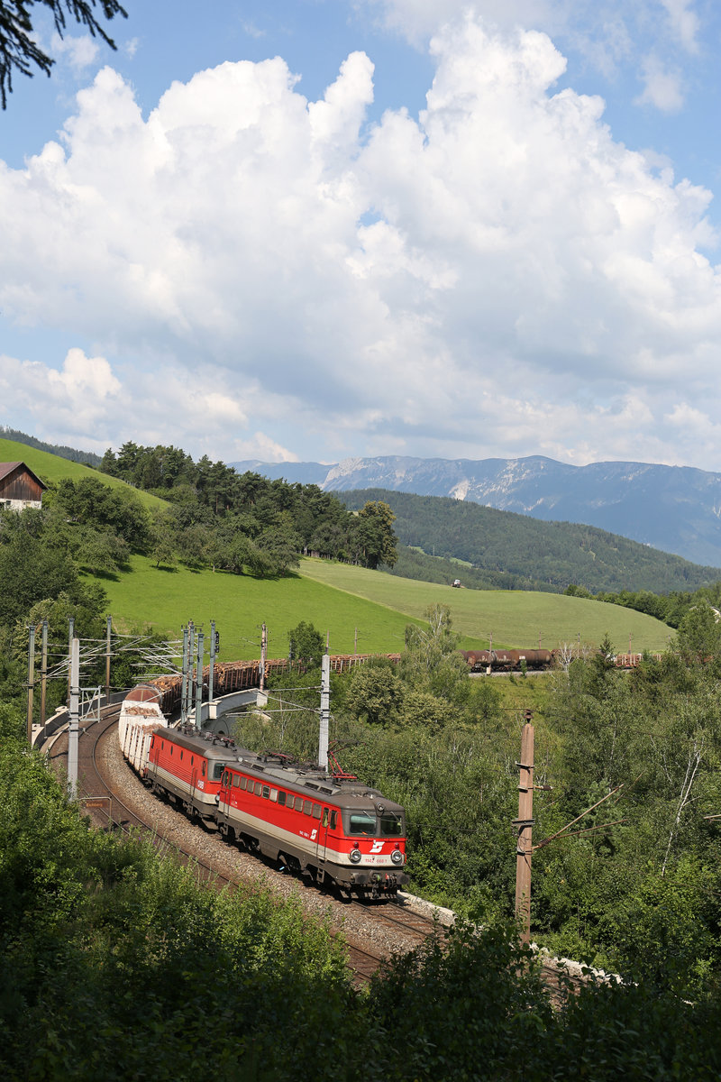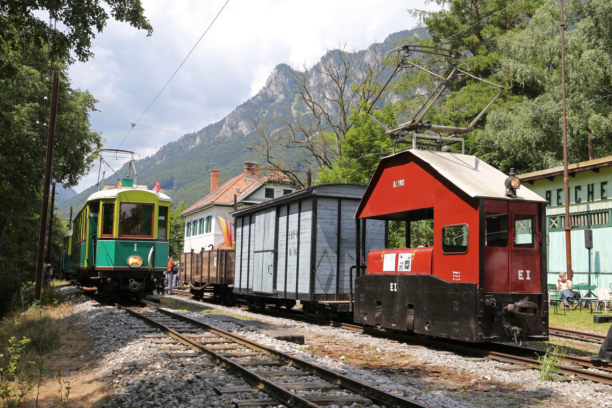 E-1 mit einen zusammengestellten Güterzug und ET-1 der die Gäste zum 100 Jahr-Jubileum von Payerbach brachte,befinden sich im Bhf.Reichenau. 14.7.18