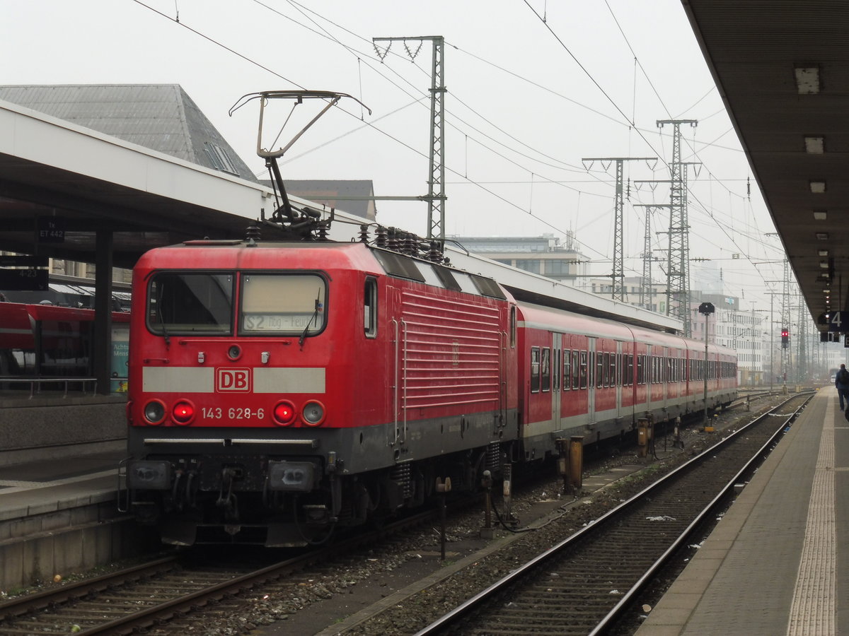 143 628 schiebt ihre x-Wagen als S2 in den Nürnberger Hbf, Februar 2018